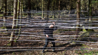 A to B is a series of performance, installation, and video works by Iman Tajik that critically examine the concept of borders and the human desire for freedom of movement. The series begins with a site-specific performance where the artist navigates a web of white tape barriers in a natural landscape, symbolizing the invisible and often arbitrary divisions that restrict personal and collective mobility. This act challenges the viewer to reconsider the constructed nature of borders and their impact on human lives.