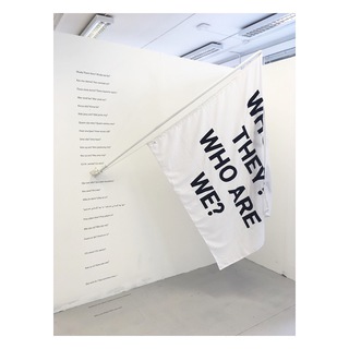 A white flag emblazoned with the words “Who are they?, Who are we?“ was first exhibited on World Refugee Day in 2017 and has since been exhibited in various countries all over the world. Asking the viewer the question, Who are they?, Who are we? , the flags are speaking about the many invisible borders we as a species have created through history. The flag is designed to act as a catalyst to discuss division and the growing fear of the stranger. The stranger is an ambivalent character. They are neither neighbour nor alien, but both, simultaneously. Close foreigners and foreign neighbours. Alien fear is a product of the stranger's incongruous character and life is marked by the struggle to reduce alienation. People are bombarded with new impressions and social life has become more and more ritualistic, and when fellow citizens and establishments increasingly act out of self-interest, the result is social distance – hiding behind human made borders, both physical and invisible.