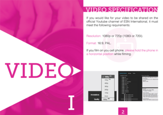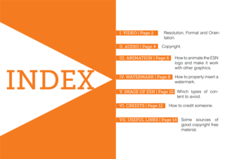 Starting out with the Index, we structured the Manual in seven different chapters, covering the majority of what goes behind the process of video editing, such as the Video itself (resolution, format and orientation), Copyright, Animation, Watermark, Image of ESN, Credits (how to insert them), and we provided useful links for free animation, music, among other resources.