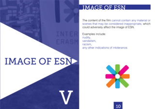 The Video Visual Identity Manual was designed due to the need to provide ESN sections with a guide of best practices for video editing, in order to avoid the violation of Visual Identity, Copyright or Corporate Identity, and to make the videos more appealing and any text easy to read.