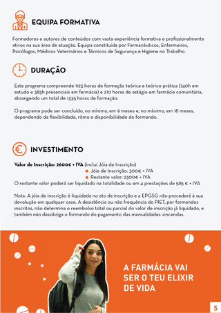 The structure of this promotional booklet includes the framework of the course, the team, duration, prices, and all details.