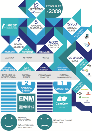 This poster was designed as a way to highlight the important facts about ESN Portugal during the National Boards' Meeting in 2015, in Brno, Czech Republic.