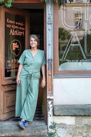 Wenn ich nicht unterwegs bin, arbeite ich in meinem Ladenatelier in Dresden – gemeinsam mit meiner Kollegin und Flauschekatze Coco. Ich bin Mutter von zwei Töchtern und habe mittlerweile schon jede Menge Lebenserfahrung. Ich mache Yoga, tanze gern, tanke Energie bei Spaziergängen an der Elbe, beim Wandern im Elbsandsteingebirge oder auf dem Fahrrad – immer mit Skizzenbuch im Gepäck.